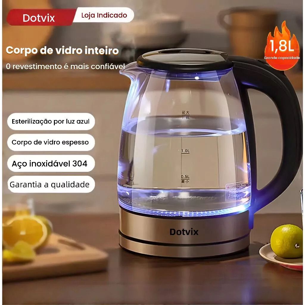 Chaleira Elétrica de Vidro 1.8L – Fervura Rápida, Design Moderno e Portátil