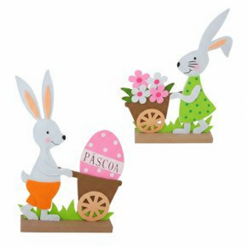 Enfeite de Páscoa Coelho Base de Madeira 34,5cm
