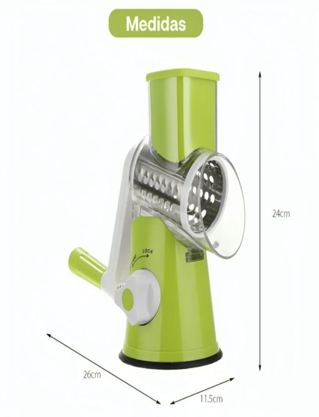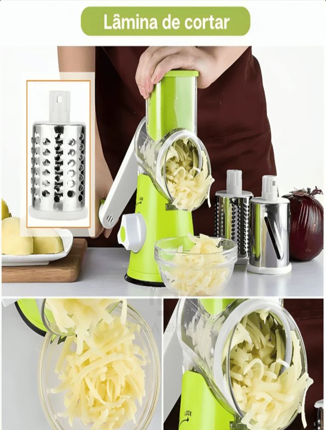 3 lâminas intercambiáveis: fatie, rale ou corte com precisão — legumes, verduras, queijos e até frutas!