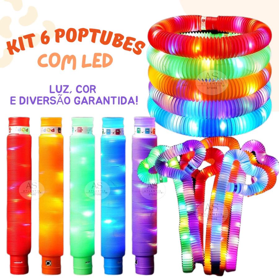 Kit 12 Poptube Com Led Fidget Toy Pop It Divertido Sensorial Brinquedo Festa