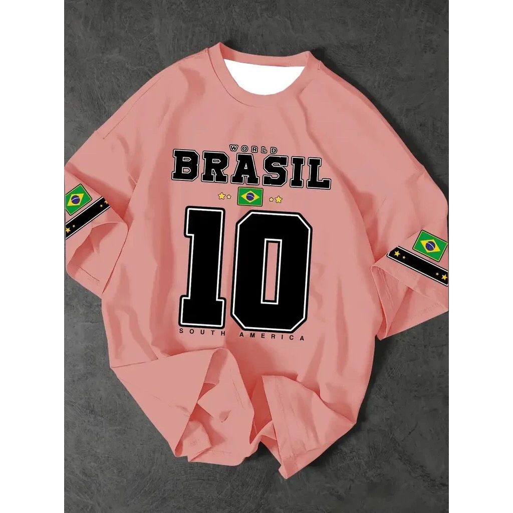 Tshirt Feminina Brasil 10 Estampada Lançamento Camiseta 100% Algodão Camisetão Camisa Oversized Plus