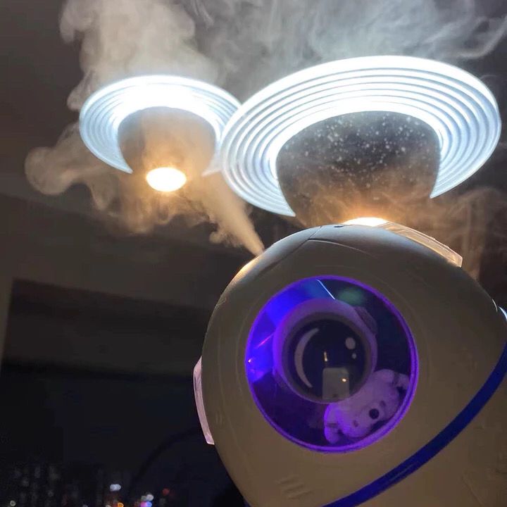 Umidificador de Ar Astronauta 220ml Luz LED Colorida Pulverizador De Névoa USB